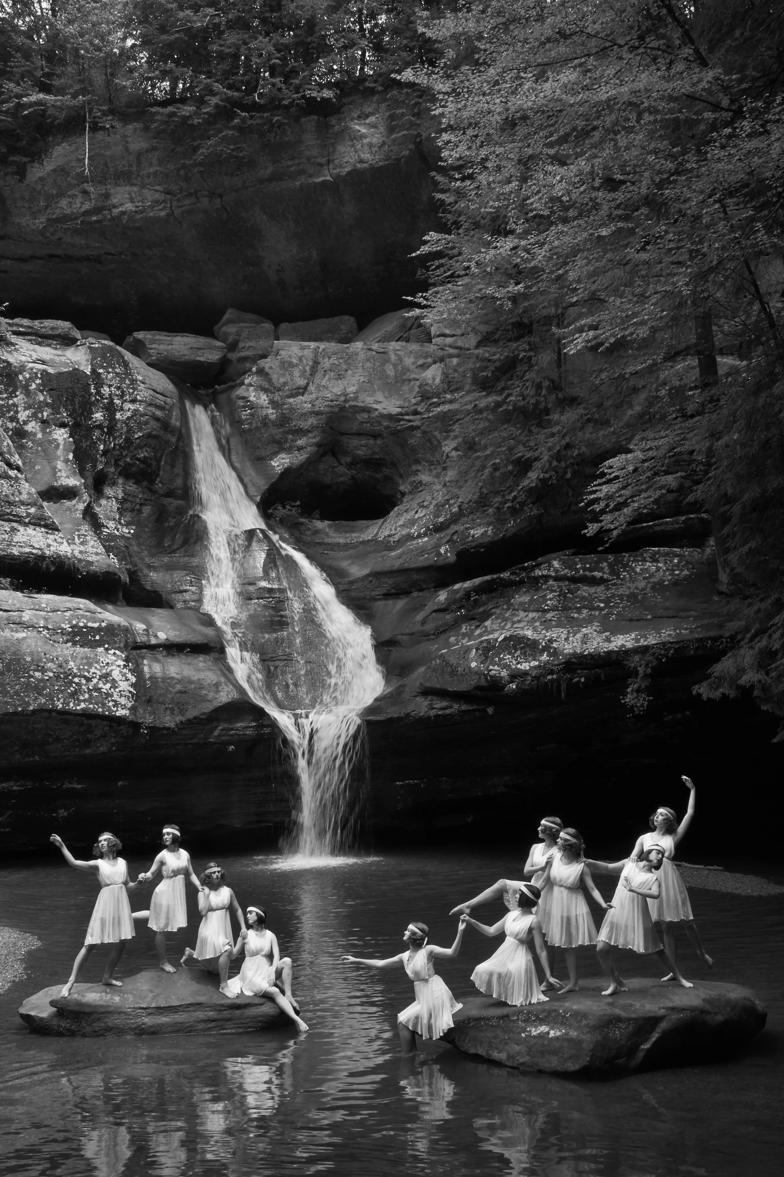 Hocking Hills School of the Dance is an imagined school of modern dance in rural Ohio during the early 20th century. Documented as a fictitious archival collection of photographs that recreate dance aesthetics of the progressive era, the project narrates a faux-history of dance pioneers Wilhelmina “Billy” Marsden and Virginia Sheridan Grant from1919 to 1936.